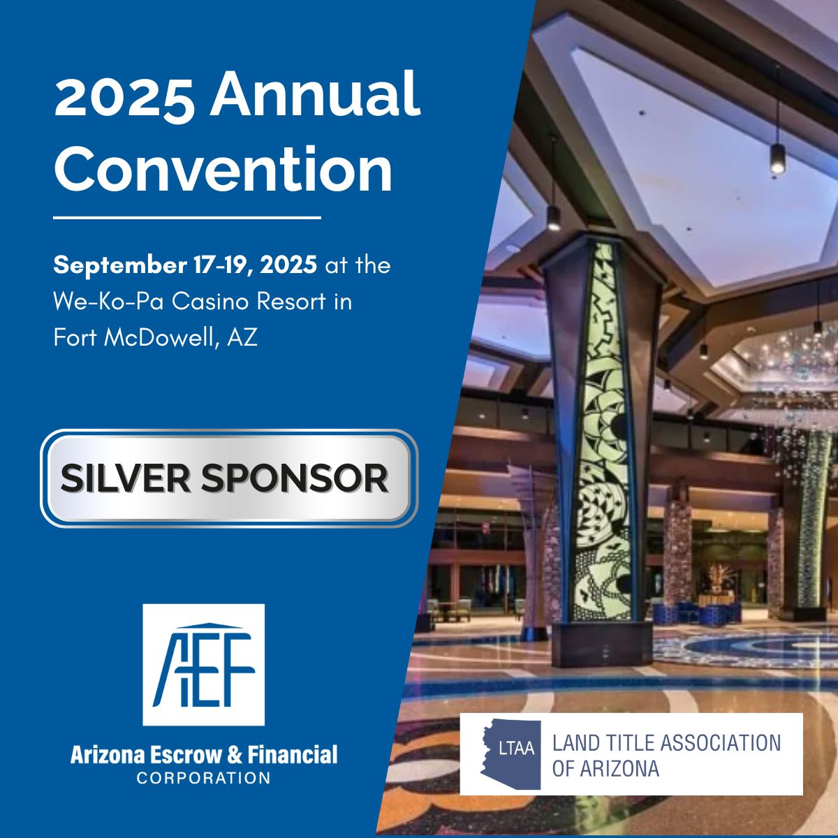 Land Title Association of Arizona 2025 AEF is proud to return as a Silver Sponsor for the LTAA Conference, taking place September 17–19. We’re excited to connect, collaborate, and continue supporting innovation in the industry. Event Details: 📅 September 17th-19th, 2025📍 We-Ko-Pa Casino Resort in Fort McDowell, AZ